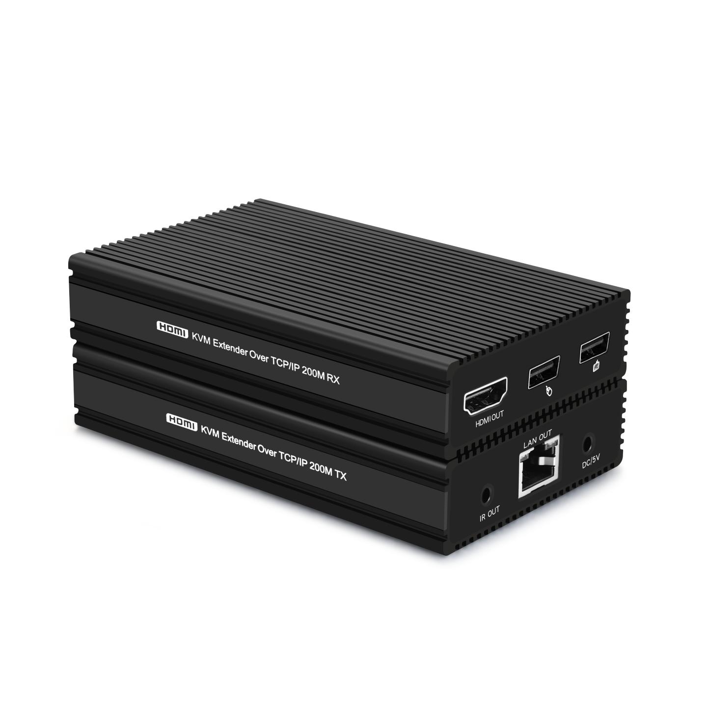 HDMI network cable extender 200m type is designed for HDMI cable extending function by connecting this product with a cat6 cable, tackling the problem that is caused by long distance transmission between signal source and display devices, supporting a maximum 200m transmission distance.Instead of using expensive HDMI cables.Specially,you can use mouse and keyboard to control it.